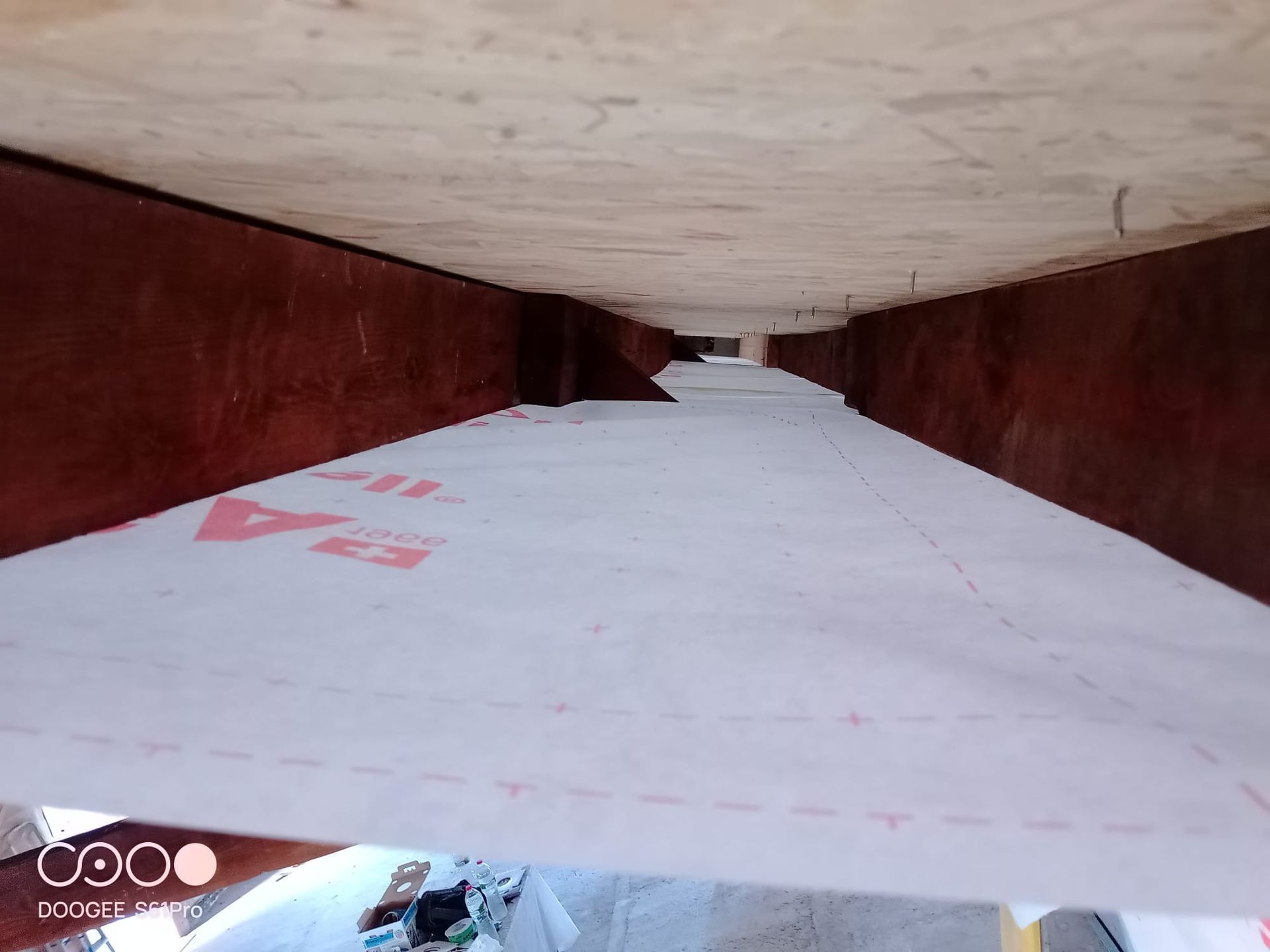 Un hombre mide un trozo de aislamiento con una cinta métrica.