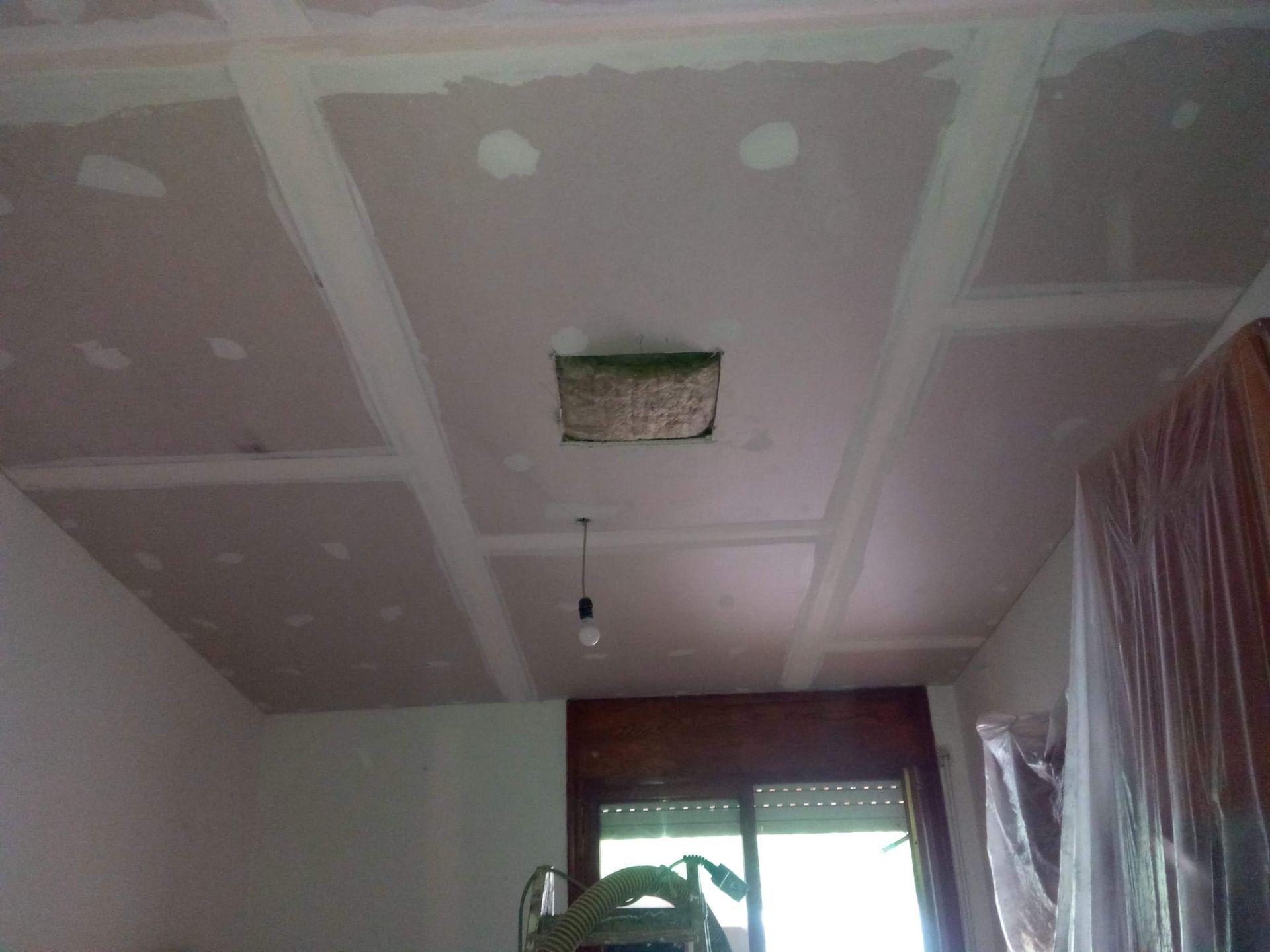 Un hombre sostiene un trozo de espuma de poliestireno en una pared.